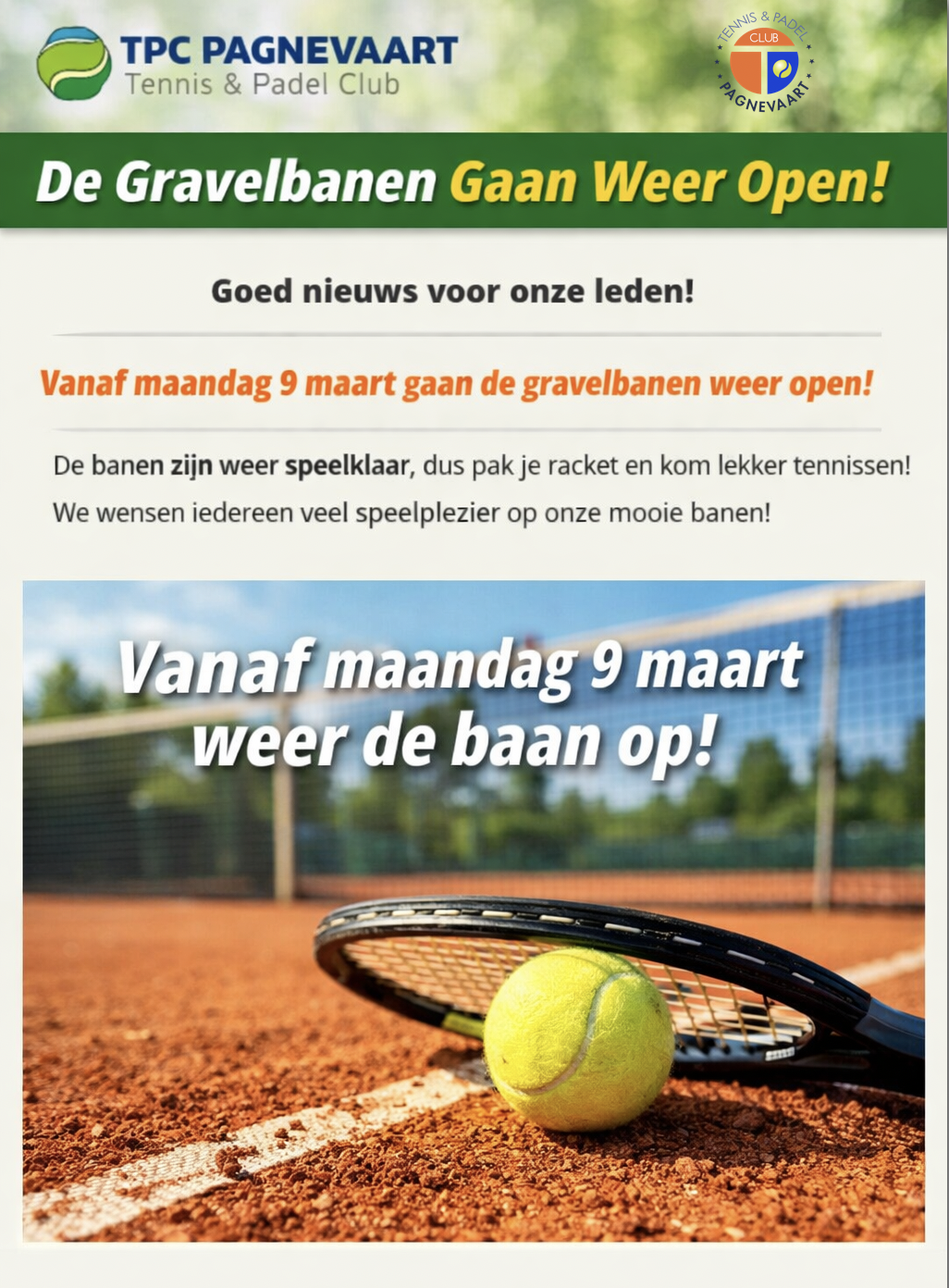 🎾 De gravelbanen gaan weer open!